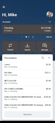 Here’s what you can do with our app: - Keep your transactions organized by allowing you to add tags, notes and photos of receipts and checks. - Set up alerts so you know when your balance drops below a certain amount - Make payments, whether you’re paying a company or a friend - Transfer money between your accounts - Deposit checks in a snap by taking a picture of the front and back - View and save your monthly statements - Find branches and ATMs near you
