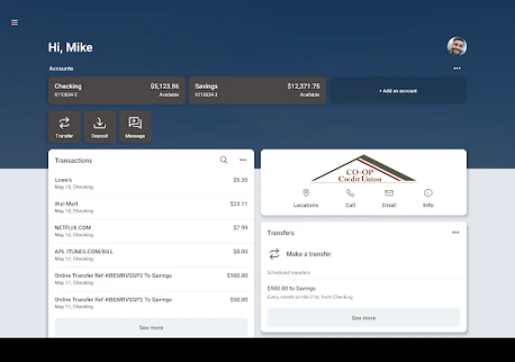Manage your Co-op Credit Union accounts from your mobile device. It's like having a branch at your fingertips at all times.