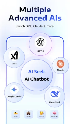AI Seek - more than a chatbot, your trusted AI partner powered by GPT-5 & GPT 5-mini, Claude 4, Gemini 2.5 Lite & Flash & Pro, DeepSeek V3.1 & R1, and Grok 4, Qwen. Always by your side for ideas, answers, and surprises.