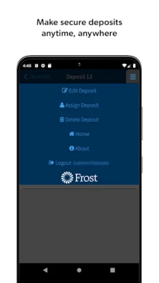 The Frost Commercial Mobile Deposit App allows you to easily deposit one or multiple checks and submit deposits directly to your account. You also can submit deposits for supervisor review on the Frost Remote Deposit Capture desktop system or Frost Commercial Mobile Deposit App before they are transmitted to the bank.