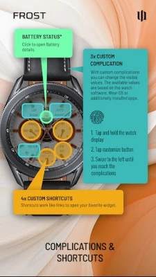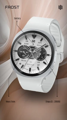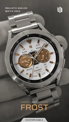 Enhance your Wear OS experience with the S4U Frost. A white realistic classic analog watch face with 3 custom complications and many customization options.