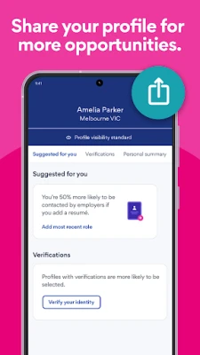 • Quickly and securely verify your work-related credentials in your Profile and on job applications with SEEK Pass.