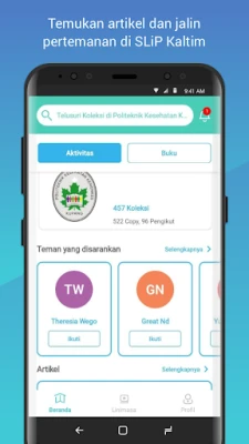 Jelajahi fitur-fitur unggulan SLIP KALTIM: - Koleksi Buku : Ini adalah fitur yang mengantarkan Anda menjelajahi ribuan judul ebook yang ada di SLIP KALTIM. Pilih judul yang Anda inginkan, pinjam dan baca hanya dengan ujung jari Anda. - ePustaka : Fitur unggulan SLIP KALTIM yang memungkinkan Anda bergabung menjadi anggota perpustakaan digital dengan koleksi beragam dan menjadikan perpustakaan berada dalam genggaman. - Feed : Untuk melihat semua aktivitas pengguna SLIP KALTIM seperti informasi buku terbaru, buku yang dipinjam pengguna lain dan beragam aktivitas lainnya. - Rak Buku : Merupakan rak buku virtual milik Anda dimana semua riwayat peminjaman buku tersimpan di dalamnya. - eReader : Fitur yang memudahkan Anda membaca ebook di dalam SLIP KALTIM