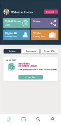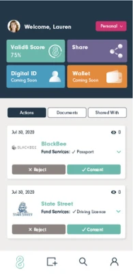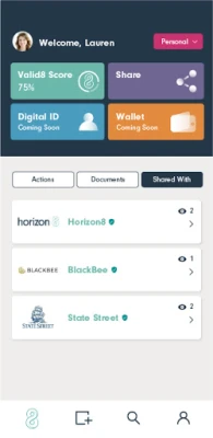 valid8Me is an easy way to securely share personal and corporate information for customer onboarding. valid8Me was created to revolutionize how we store and share our most sensitive information. Its purpose is to empower users to securely hold and instantly release key documents from one, personalized digital identity vault.